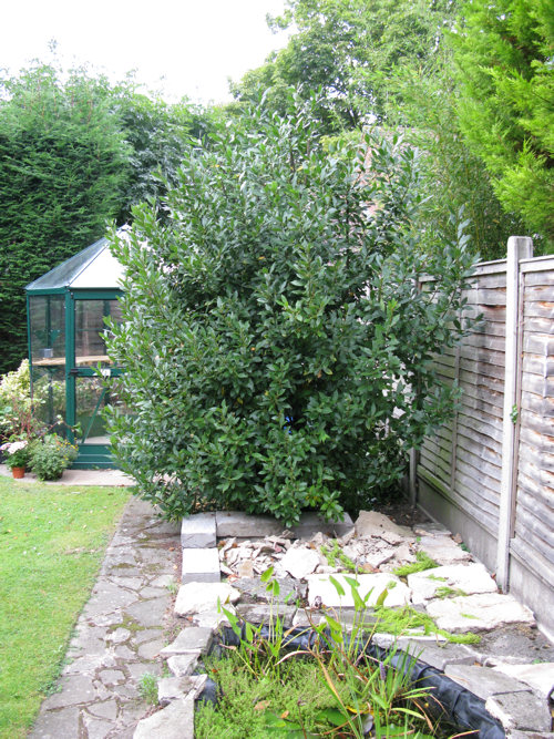 (2) I decimated the bay tree. Although I think that the bay tree is so lovely it should be as big as possible, I also realised that if I let it grow any bigger I wouldn’t be able to prune it myself safely any more, so I got on my biggest step ladder and pruned off the top bits.
