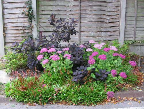 Border with Cotinus, Sedum, Spirea and Persicaria