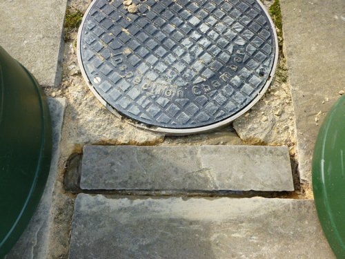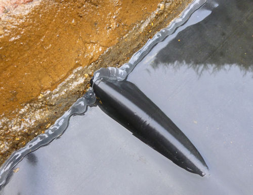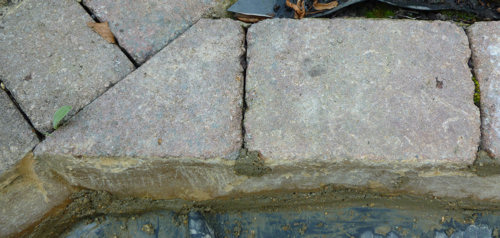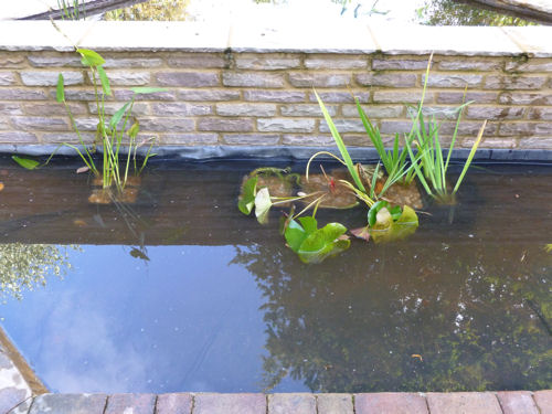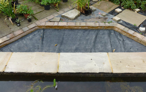 I pulled the pond liner partly out of the pond because rain was forecast later and I didn’t want the pond to fill up again. Then I put a few bricks and other things in the hole to help frogs get out if they should jump in without noticing that all the water had gone.