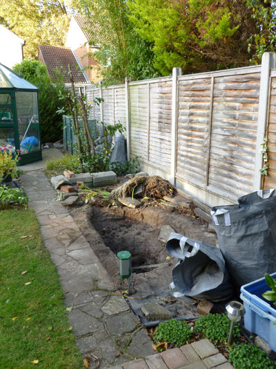 So, I am still planning to get the right hand part of the garden finished this winter if the weather is unexceptional. I should be able to get the bay tree dug up, the pond filled in and the path taken up by the end of October. I can then use the rubble from the path foundations for the stepping stones in November, and also work out the layout for the section. Then in December I can get quotes for any work that I cannot do myself, and have the work done in January. Then order lots of soil for the lawn, get it level and fertilised, and sow the lawn seed in April. And if you believe this will happen without any further slippage, you have much more faith in human nature and circumstances than I have.