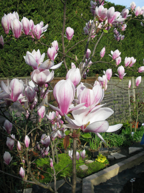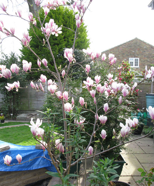 I have grave doubts about whether it is a good idea to plant a magnolia in such a restricted space, but I think it will be OK there for another five years at least. And although magnolias don’t like being pruned, it doesn’t seem to kill them. So I have made my decision, and we will see how the arrangement develops.